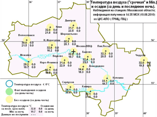 5 августа Гидрометеобюро зарегистрировало в столице температурный рекорд в 34,4 градуса - на 1,7 градуса выше, чем 5 августа 1920 года. 6 августа базовая столичная метеостанция на ВВЦ зафиксировала 17-й температурный рекорд за нынешнее лето - 36 градусов ровно. Предыдущий рекорд этого дня был установлен в 1920 году и равнялся 35,4 градуса.