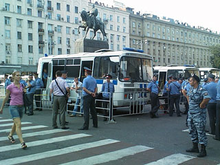 Бирюков говорит, что участники митинга пытаются привлечь к себе внимание, перекрывая пешеходные зоны. При этом милиция постоянно предупреждает собравшихся, что мероприятие на Тверской площади не санкционировано властями и просит не создавать препятствий для перемещений граждан.