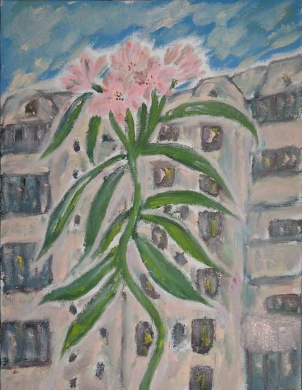 Потрескавшийся потолок, чёрный патрон с вытянутыми наружу жилами, окно, татуированное решёткой, облупленные стены, обшарпанный пол – всё разрушает пыль, особенно эта – висящая, солнечная. Она становиться существом материала, плотью бункера и даже мои устилающие всё вокруг чёрные, тугие волосы под её влиянием превращаются в золотисто-масляные ковры.