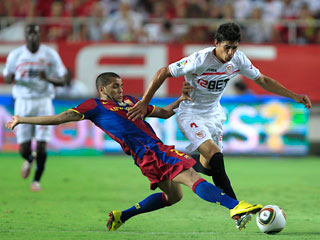 Начало футбольного сезона в Испании началось с сенсационного поражения "Барселоны". В первом матче за Суперкубок Испании по футболу "Севилья" одержала волевую победу над командой Хосепа Гвардьолы - 3:1.
