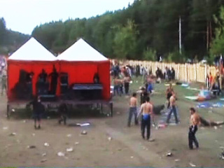 Как пишут в ЖЖ очевидцы, все началось с того, что к северному входу, где запускали музыкантов, подъехало большое количество машин, среди которых было много дорогих иномарок. Приехавшие молодые люди одновременно стали снимать футболки и доставать обломки арматуры, монтировку и ломы. Как только заиграла музыка, через ворота строем вошли около 100 человек. Уже минут через 10 налетчики стали группами выбегать из ворот, скидывая оружие под стоящие машины и в кусты. Быстро садились в машины и уезжали.