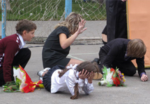 На траурном митинге в рязанской школе №1, посвященном памяти жертв теракта в Беслане, учащиеся школы показали инсценировку, в которой подробно воссоздали картину трагических событий 2004 года. Как сообщает издание "Новости Рязани", дети – участники спектакля падали на землю, как бы сраженные пулями террористов. От увиденного некоторые дети плакали.