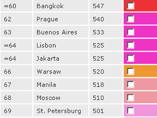 Сильнее всего изменилась позиция Хельсинки (58-е место, -8 позиций), острова Мэн (32-е место, -8 позиций), Глазго (46-е место, +6 позиций), Мюнхена (27-е место, +5 позиций).