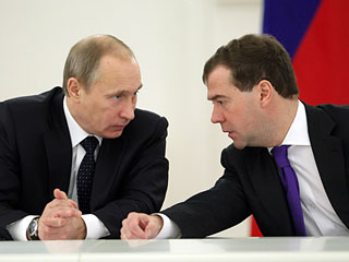 Очередной опрос, проведенный "Левада-Центром", показал, что россияне в той или иной степени доверяют президенту страны Дмитрию Медведеву и достаточно стабильны в своем скорее положительном отношении к премьеру Владимиру Путину.