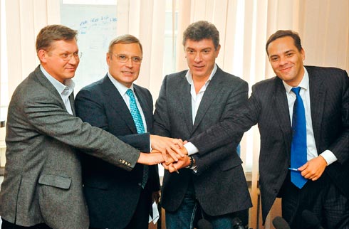 | Владимиру Рыжкову, Михаилу Касьянову, Борису Немцову и Владимиру Милову не удалось провести пресс-конференции в офисе РИА «Новости», но это не помешало демократам объединиться |