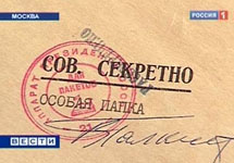 Папка документов по Катынскому делу. Кадр "Вестей"