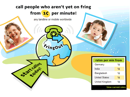 Новая функция популярного интернет-мессенджера для мобильных телефонов Fring позволит пользователям этой программы осуществлять звонки на городские и мобильные телефоны по всему миру, сообщает РИА "Новости" со ссылкой на Engadget. Новый сервис получил название FringOut, а тарифы начинаются с 1 цента.