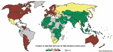 В ней представлены далеко не все страны, но, согласитесь, картинка очень показательна, не правда ли? Как четко видны культурные различия! В Западной Европе, США, Канаде, Австралии и Новой Зеландии процент курильщиков-женщин немногим уступает проценту курильщиков-мужчин, а кое-где даже и превосходит его. А в патриархальных обществах курят, как правило, мужчины.