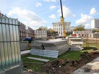 Строительство ускоренными темпами началось в начале сентября, хотя проект комплекса вызвал многочисленные протесты в профессиональной архитектурной среде еще несколько лет назад. 23 сентября 2010 года общественное движение "Архнадзор" обратилось с открытым письмом к президенту РФ с просьбой приостановить строительство. На площади у Кремля уже прошло несколько акций протеста.