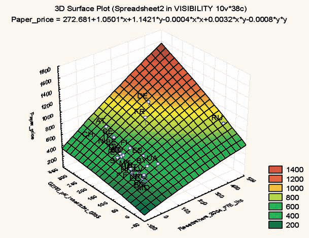 Германия, Франция, Великобритания и Россия по этим параметрам находятся в зоне «дорогой» науки. Почему это так? Тут возможно несколько ответов, один из которых указывает на внутренний дефект статистики: НИОКР суммирует разные статьи расходов на исследования, включающие, например, оборонную науку, результаты которой объяснимым образом мало отражены в открытых публикациях и которая при этом дорого стоит [6]. Меньшие страны, в политическом и военном плане следующие за супердержавами, выигрывают за счет этого в интеллектуальной видимости. Так это или нет, но В&М обошли обсуждение этого вопроса вовсе, исключив из рассмотрения все национальные науки, уступающие по размерам итальянской. Сделай они иначе, им пришлось бы отвечать на вопрос: «а что было бы с публикационной отдачей на доллар, если бы численность ученых была сокращена, а финансирование на каждого из них, соответственно, увеличено?» [7].