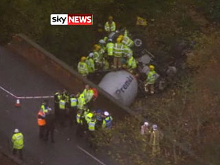 Инцидент произошел около 18:30 по московскому времени. Пробив ограждение моста, бетономешалка упала на проходящий как раз в этот момент под мостом пассажирский поезд около станции Оксшотт к юго-западу от британской столицы.
