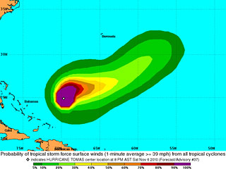 В пятницу "Томас" обрушился на Гаити. Жертвами стихии стали как минимум семь человек. Ураган вызвал наводнения в западной части государства, где расположены палаточные лагеря для пострадавших от разрушительного землетрясения, произошедшего в начале 2010 года.