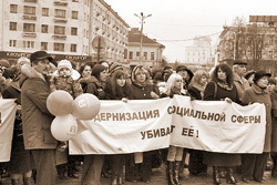 10 ноября региональные профсоюзы провели в Пскове митинг протеста и снова привлекли внимание к проблемам необоснованного изменения системы выплат пособий по временной нетрудоспособности, а также рискованному эксперименту по введению в Псковской области в добровольно-принудительном порядке новой системы оплаты труда работников бюджетной сферы [ 1 ]. Положение было утверждено еще в сентябре исполняющим полномочия губернатора Максимом Жаворонковым до завершения переговоров с профсоюзами, точнее говоря – после их прекращения. Профсоюзы заявили митинг протеста и потребовали встречи с губернатором после митинга. Встреча прошла даже накануне митинга, но позиции профсоюзов не изменила, и митинг прошел по запланированному сценарию. «Псковская губерния» полагает, что наиболее серьезные события еще впереди.
