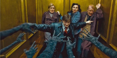 В последнем «Гарри» — ни одного оптимистического кадра Куарона теперь поднимают на щит, тем не менее режиссером последних трех фильмов назначили более контролируемого британца Дэвида Йейтса. Но и тот учудил. В седьмом фильме (в отличие от прежних шести, он поделен на две части: первая вышла у нас и в большинстве других стран в минувшую пятницу, а вторая должна появиться 14 июля 2011-го) он умудрился изменить жанр эпопеи. Прежде она была пусть мрачноватой, но все-таки романтической сказкой. Демонстрировала альтернативную историю человечества, участником которой многим зрителям хотелось бы стать. Новый фильм — чистой воды антиутопия, то бишь рассказ о потенциальном тоталитарном кошмаре, который может поджидать человечество. Какая уж тут романтика? В седьмом «Гарри» — в это даже трудно поверить — ни одного светлого оптимистического кадра. Только туман, пасмурки, сумерки... Да, есть один солнечный эпизод в финале, но и тот — сцена похорон. Хоронят преданного Гарри эльфа Добби, внешность которого с момента его появления во втором фильме цикла «Гарри Поттер и тайная комната» заставила ржать западные СМИ, поскольку Добби внешне — карикатура на Владимира Путина. А что? Реклама ВВП. Теперь Добби окончательно проявил себя самоотверженным героем.