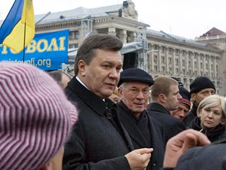 Президент Украины Виктор Янукович и премьер-министр Николай Азаров в субботу прибыли на Майдан Независимости (площадь Независимости), где провели встречу с предпринимателями, протестующими против принятия Налогового кодекса.