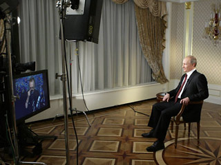Интервью Путина Ларри Кингу показали в США в среду, 1 декабря, в 21:00 по местному времени (в 5:00 по московскому), передает РИА "Новости". Ларри Кинг задавал вопросы сидя в нью-йоркской студии, на фоне электронной карты мира, а Путин по-русски, через переводчика-синхрониста, отвечал из студии Дома правительства в Москве. Кинг за свою карьеру взял больше пятидесяти тысяч интервью, но формат телемоста опробовал впервые, отмечают "Известия".