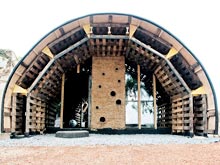 Нынешний проект "Трубщоба" получился еще более минималистичным и экономичным за счет изменения конструкции, сообщает портал Inhabitat. Первый "палетный дом" имел обычную прямоугольную форму, поэтому для соединения поддонов использовались деревянные балки, а это довольно дорогой стройматериал для экономпроекта. В доме новой конструкции для скрепления палет оказалось достаточно глины, сена и других легкодоступных местных материалов.