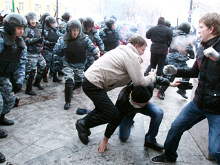 Колокольцев отметил, что у сотрудников милиции работа сопряжена с риском, но этому риску могли быть подвержены простые граждане. "Я сам вчера видел по телевидению, как идет мужчина с двумя детьми, а в его сторону летят камни и палки. Как здесь можно реагировать?", - сказал он, добавив, что был удивлен реакцией представителей оппозиции, заявивших, что милиция действовала слишком мягко к зачинщикам субботних беспорядков.