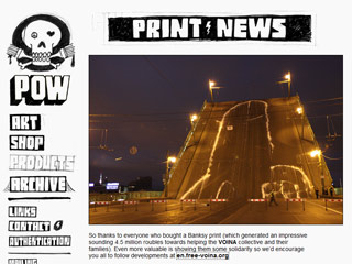 Как следует из сообщений на сайте, восхищение Бэнкси вызвала самая известная акция "Войны" - гигантский фаллос, изображенный на Литейном мосту. Рисунок был выполнен за 23 секунды, а после разведения моста ночью 14 июня 2010 года оказался поднят как раз рядом со зданием петербургского ФСБ. Художник также оценил акцию "Дворцовый переворот", давшую правоохранительным органам повод для задержания участников арт-группы.