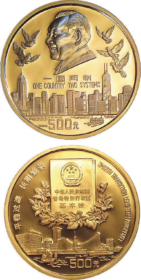 | Золотая монета Китая достоинством 500 юаней. Вес — 1 унция. Золото 999-й пробы |