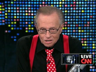Легендарный американский ведущий, самый высокооплачиваемый журналист мира, любимец публики Ларри Кинг провел в четверг вечером свою последнюю передачу на телеканале CNN. В России легендарный телеведущий известен своими занятными интервью с Владимиром Путиным, ответ которого на вопрос о подлодке "Курск" - "она утонула" - вошел в историю.