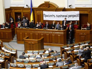 Накануне оппозиционные депутаты из объединения "Блок Юлии Тимошенко - Батькiвщина" силой заняли трибуну и президиум Верховной Рады, чтобы сорвать заседания и потребовать прекращения уголовного преследования Тимошенко. Они выразили намерение переночевать там.