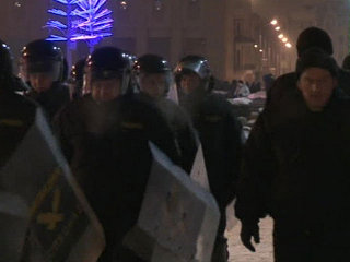 На улице Немига ОМОН избил Владимира Некляева. Как заявил кандидат в президенты Николай Статкевич, спецназ избил двух кандидатов - его и Некляева, которого без сознания госпитализировали с черепно-мозговой травмой. Позднее пресс-секретарь Некляева Юлия Рымашевская сообщила, что "Некляева избил спецназ, когда мы следовали на Октябрьскую площадь". Сам Статкевич продолжил шествие на Октябрьскую площадь на несанкционированный митинг.