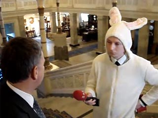 Из Верховной Рады не смогли выгнать журналиста в костюме зайца (ВИДЕО)