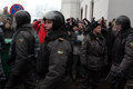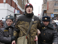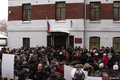 У Хамовнического суда, где судья Виктор Данилкин начал зачитывать приговор по второму делу Ходорковского-Лебедева, с утра собралась толпа. "Свободу!" и "Позор!" скандировали так громко, что было слышно в зале суда. Вскоре начались задержания. "Космонавты" выхватывали людей из толпы, заталкивали в автобусы, избивали (