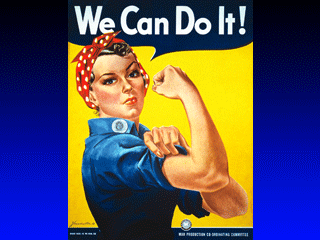 Плакат появился в 1942 году, когда художник Дж. Говард Миллер работал над серией наглядных материалов, призванных привлечь женщин к работе, а также предотвратить прогулы и забастовки. Для рисунка лица модели он использовал фотографию из репортажа агентства United Press International как раз с завода, на котором работала Джералдин. Художник сохранил черты лица, однако сильно преувеличил мускулатуру модели.