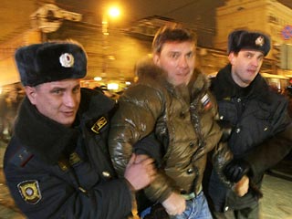 Оппозиционеру Эдуарду Лимонову с соратниками власти Москвы и милиция не дали провести митинг на Триумфальной площади.