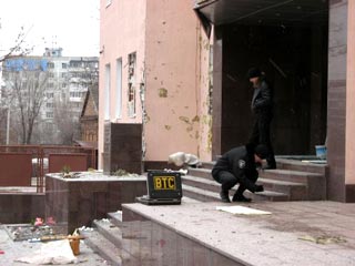 В ГУ МВД Украины в Запорожской области агентству "Интерфакс" сообщили, что пострадал памятник и частично - само здание обкома. В нем вылетели стекла и облицовка.
