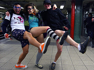 Акция "Без штанов в метро" (No Pants Subway Ride) прошла в воскресенье, 9 января, в 50 городах 24-х стран. В Нью-Йорке в "юбилейной", десятой, акции приняли участие 3500 человек. "Отчеты" о мероприятии размещены на сайте Improv Everywhere.