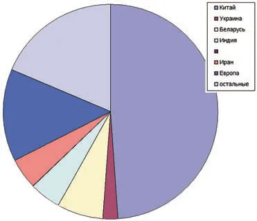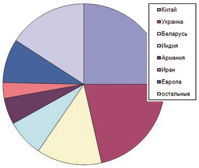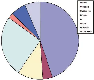 Таким образом, на примере одного журнала видно, что рост ИФ хорошо коррелирует с долей иностранных статей и со степенью монополизации журнал. Динамике ИФ журнала более всего соответствует динамика доли статей от всех иностранных авторов (ДЗ+). Интересно отметить, что этот рост (с 2004) пошёл после того, как журнал прекратил практику формирования тематических номеров (2000-2003) (3). Трудно сказать, что же именно послужило причиной роста ИФ. Рискну предположить, что рост ИФ и доли иностранных статей есть следствия одной причины. Я думаю, что в начале 2000х редколлегии удалось привлечь внимание иностранных учёных к журналу. И чем больше становится этот интерес, тем чаще цитируют статьи и чаще присылают рукописи. Если эта гипотеза верна, то из неё вытекает следствие: за пределами РФ наши статьи наиболее востребованы в Китае, затем на Украине, в Беларуси – далее см. рисунок 1.