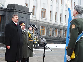 На 2014-2015 годы запланировано дальнейшее развитие вооруженных сил за счет изменений в структуре бюджетных расходов Минобороны. ", - заявил Янукович, выступая по случаю Дня соборности Украины.