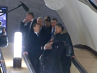 Кроме того, президента сопровождали министр внутренних дел Рашид Нургалиев, директор ФСБ Александр Бортников. Чиновникам, как и рядовым гражданам, пришлось воспользоваться проездными картами, чтобы пройти через турникеты. Помощники заблаговременно позаботились о том, чтобы министры и главы ведомств не стояли в очереди в кассу - билет у каждого был уже наготове.