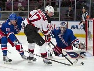 Хоккеисты "Нью-Джерси" одержали победу над "Нью-Йорк Рейнджерс" в гостевом матче регулярного чемпионата Национальной хоккейной лиги. Игра, состоявшаяся на арене "Мэдисон Сквер Гарден" в Нью-Йорке, завершилась со счетом 3:2 в пользу "дьяволов".
