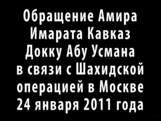 Доку Умаров, именующий себя верховным амиром "Имарата Кавказ" (террористической организации, действующей на Северном Кавказе), опубликовал новое видеообращение, в котором взял на себя ответственность за теракт в "Домодедово". Запись появилась на сайте KavkazCenter.com спустя две недели после взрыва - 7 февраля. До этого в интернет было выложено другое видео Умарова, на котором он берет ответственность за грядущие теракты. Оно было сделано еще до теракта в аэропорту и было воспринято прессой как предупреждение и признание своей причастности к этим событиям.