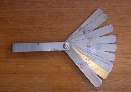 Толщиномер (feeler gauge) - простейший инструмент для измерения ширины зазоров, состоит из набора калиброванных металлических пластинок различной толщины. В данном случае он использовался техниками на площадке 39A Центра им. Кеннеди (Kennedy Space Center) при ремонте одного из элементов системы заправки бака.