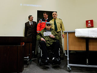 Сам подсудимый заявляет, что является жертвой нацистов. По его словам, он был узником лагеря, где его якобы использовали для рабского труда. Он признался, что служил SS в качестве охранника лагеря, однако утверждает, что не сотрудничал с нацистами.