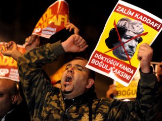 Собравшиеся на центральной площади Бенгази, а также в соседних Эль-Бейда, Дерне и Тобруке ливийцы с негодованием бросали обувь в гигантский телеэкран и портреты вождя ливийской революции, который грозился использовать силу против "тех, кто хочет превратить Джамахирию в исламское государство, в новый Афганистан".