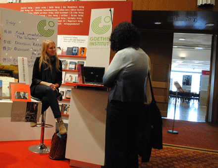 Далее на российском стенде были еще две презентации и встреча с авторами издательств "Текст" и "Книжники". Светлана Шенбрунн представляла роман "Пилюли счастья" ("Я заглянула к Паулине в библиотеку и, к своему удивлению, увидела там Пятиведерникова. Хотя, собственно, чему удивляться? Забрел от безделья. В надежде выпросить у жены десятку на пиво.... "). А Юлия Винер - книгу рассказов "Место для жизни" ("Жожо не любил окружающих, а окружающие не любили Жожо. Тем не менее к сорока годам он обзавелся и женой, и тремя детьми и сумел выстроить процветающее дело – булочную-кондитерскую с выпечкой на месте...") . Обе - бывшие москвички, лет тридцать живут в Израиле. Людей к ним пришло много.