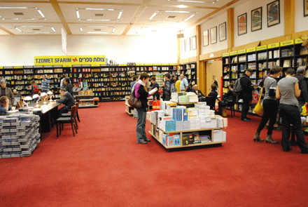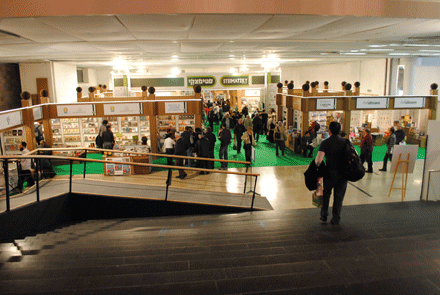 Поскольку содержательная часть этого репортажа оказалась куцей, то восполняю ее картинками ярмарки. Вообще, это же нормальная международная ярмарка и там не только российский стен. Там, согласно справке, представлены более 1200 издательских домов из 40 стран мира, которые привозят на ярмарку более 100 000 книг на разных языках. Выставка проводится в Израиле раз в два года и имеет статус международной. Впервые была организована в 1963 году. Там и выставочные стенды, и просто торговые.