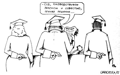 Я даже одного такого члена общества сейчас всем заложу. Мы что, не знаем, что судья взятки берут?! Берут. Но кого проще поймать за руку — милиционера или судью? Конечно, милиционера, следователя, прокурора, государственного гражданского служащего. Судью — пойдите поймайте. Так вот этот член общества имеет фамилию Медведев, зовут его Дмитрий Анатольевич. Так что — кампания по дискредитации или все же надо реформировать?