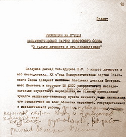 Товарищи! В Отчетном докладе Центрального Комитета партии XX съезду, в ряде выступлений делегатов съезда, а также и раньше на Пленумах ЦК КПСС, немало говорилось о культе личности и его вредных последствиях.