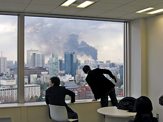 "Пару часов назад сильно трясло", - рассказывает второй собеседник. Однако он с коллегами находился на первом этаже, где толчки не ощущались так сильно, как на верхних этажах. Японцы бросали все и выбегали на улицы - с собой выносили только самое главное - папки с документами. Россияне и другие иностранные жители столицы следовали их примеру.