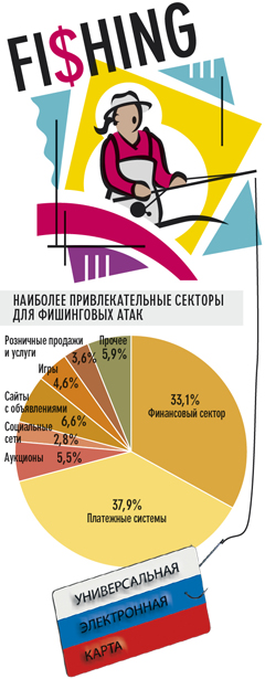 Эти доводы не кажутся убедительными независимым экспертам. «Риски раскрытия персональной информации сегодня не могут быть сведены к нулю, особенно когда это касается банковской информации», — возражает Ирина Левова, ведущий аналитик Российской ассоциации электронных коммуникаций (РАЭК). Одно из наиболее распространенных киберпреступлений — фишинг**От английского слова fishing — рыбная ловля, выуживание., основной целью которого является получение идентификационных данных пользователей: паролей, номеров кредитных карт, банковских счетов. «Типичный пример фишинга — уведомление, получаемое по электронной почте и содержащее некоторую весомую причину для того, чтобы пользователь незамедлительно выдал свою личную информацию», — поясняет Левова. Например, махинаторы ссылаются на мифический технический сбой в компьютерной системе банка, из-за которой данные клиента якобы утеряны, и если их срочно не восстановить, карта будет заблокирована. Доверчивый клиент, боясь остаться без денег, торопится продублировать на указанный адрес свои персональные данные, которые оказываются в руках мошенников. По словам Левовой, сейчас в России появляется в среднем 70 фишинговых порталов в месяц, направленных против российских банков и платежных систем. Ущерб от фишинга в нашей стране за 2010 год в РАЭК оценивают в $10 млн, и прогнозируют рост этого вида мошенничества на 300% ежегодно — по мере развития карточной системы в России**Ущерб от фишинга в США — $150–200 млн, в Канаде — $70–100 млн.. «Массовое внедрение универсальной платежной карты лишь увеличит этот процент», — полагает Ирина Левова.