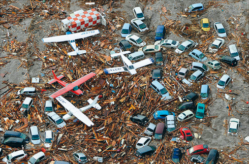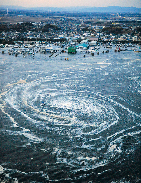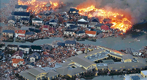 11 марта сначала задрожала земля, потом море упало на землю, которая, как никакая другая в мире, усеяна плодами «технотронной эры», вплоть до персональных сейсмографов. Корабль с сотней человек затянуло в гигантскую воронку. Волна смыла пассажирский поезд… В префектуре Мияги, принявшей на себя основной удар стихии, местность в основном равнинная — это было видно на телекадрах, сделанных с вертолетов. На возвышенностях, как это обычно рекомендуется, от большой волны не спасешься…