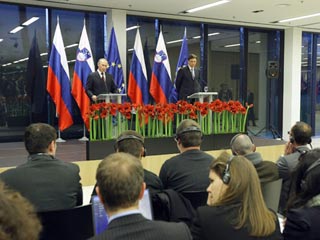 Во вторник на пресс-конференции в замке Брдо в Любляне словенская журналистка спросила российского премьера о том, насколько его взгляды отличаются от позиции российского президента по ситуации в Ливии. В ответ на это Путин сказал: "У нас президент руководит внешней политикой, и там не может быть разделения... Но уверяю вас, мы очень близкие люди и понимаем друг друга. Президент должен формулировать позиции России в соответствующих выражениях".
