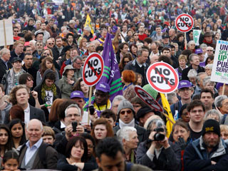 Сто тысяч лондонцев вышли на акцию протеста против сокращения бюджетных расходов